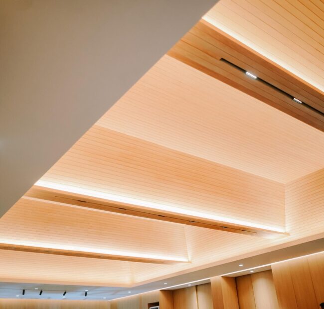 - Koridor ve Geçiş Alanları: Uzun koridorlarda uygulanan lineer aydınlatma ve panel tasarımları mekâna derinlik kazandırır.